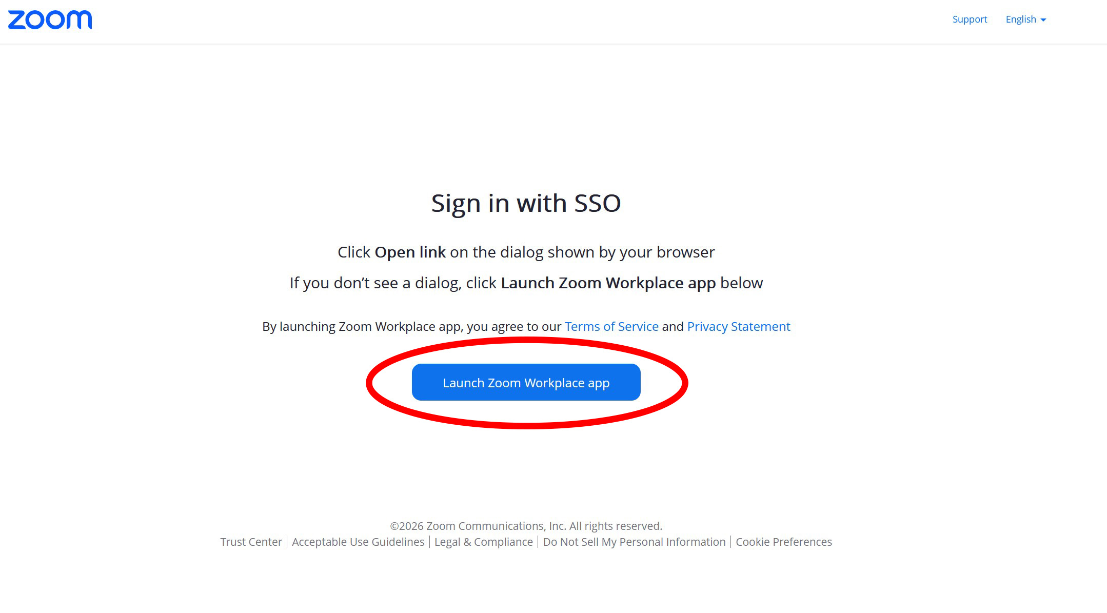 Finally, select Launch Zoom Workplace app to complete the login process.